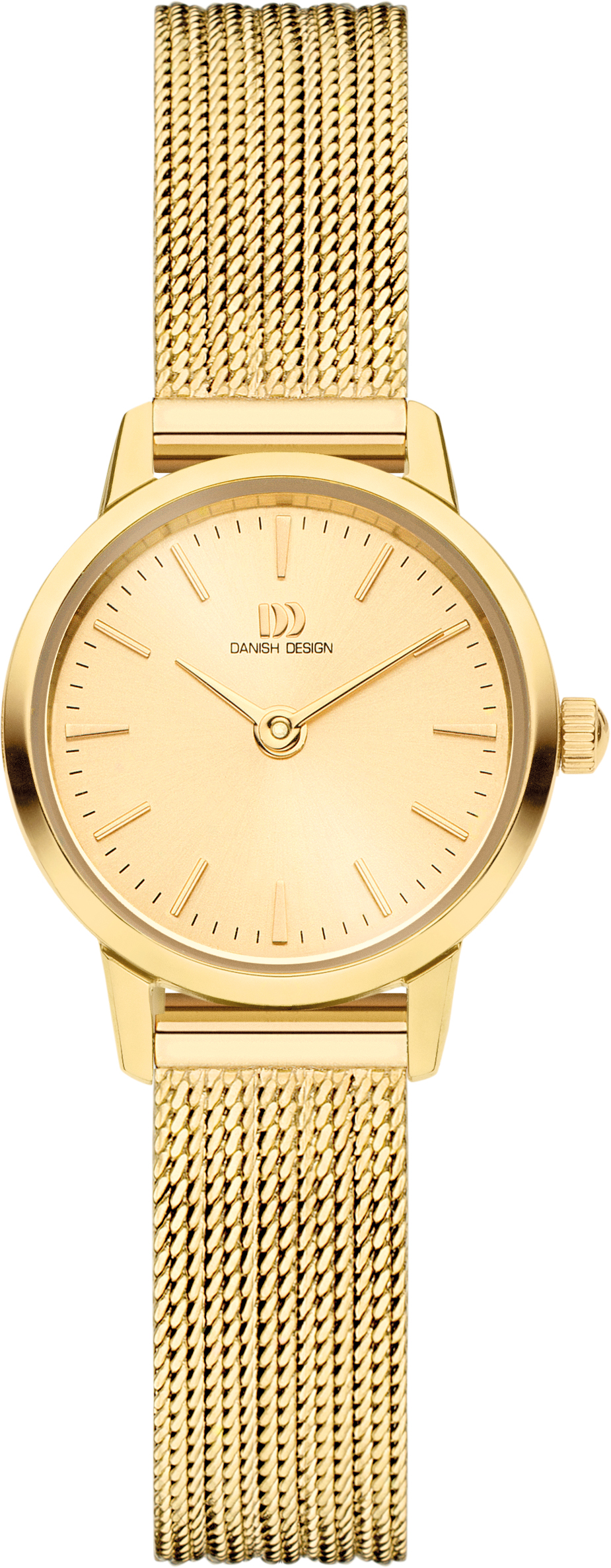 Dankzij de kleine kast en de dubbellaagse mesh band geeft dit gouden PVD dames uurwerk glans aan je pols.